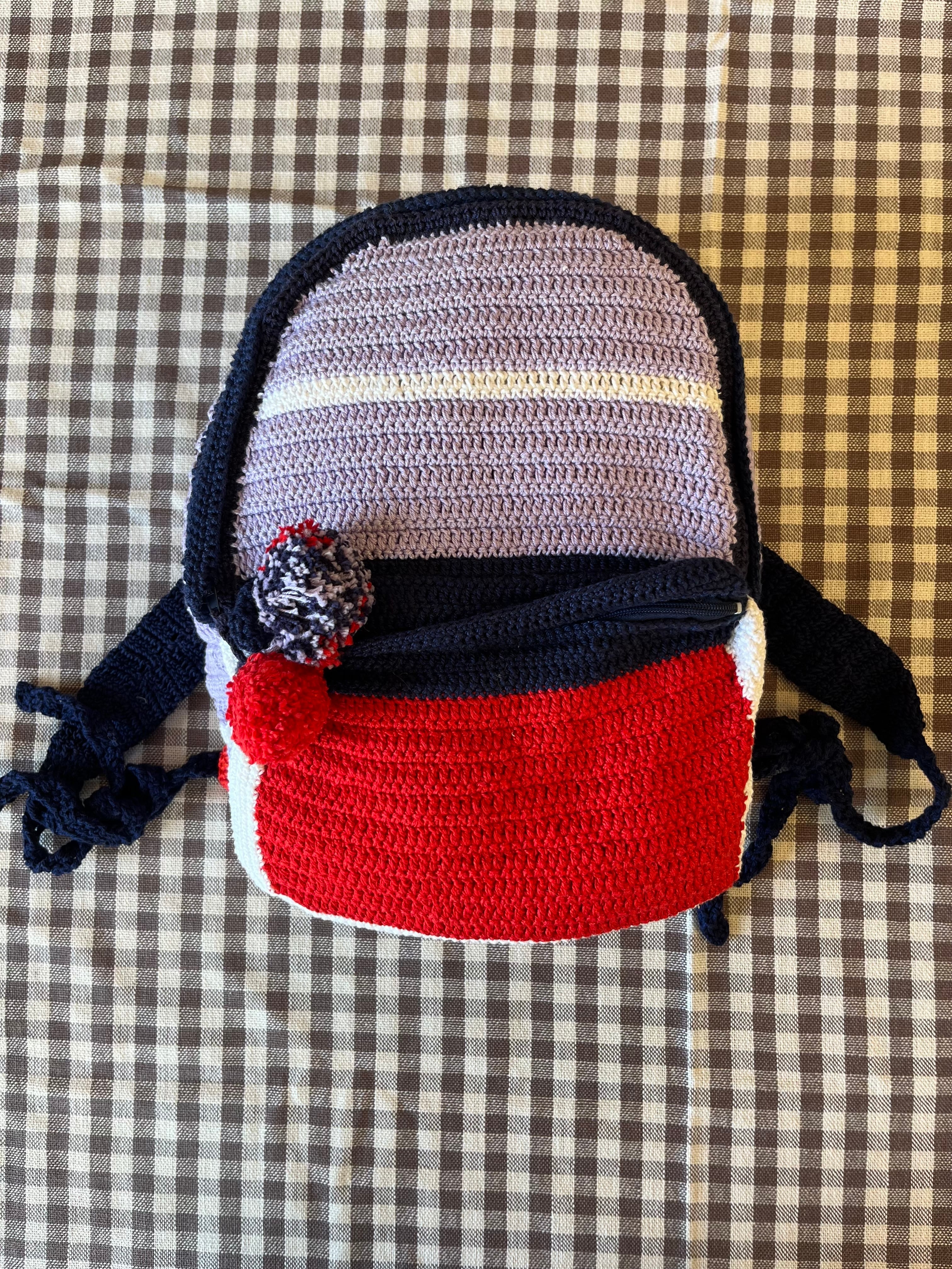 ひとつひとつ手編みをしている一点もの、柔らかい愛の詰まったリュックです。贈り物にもぜひ。