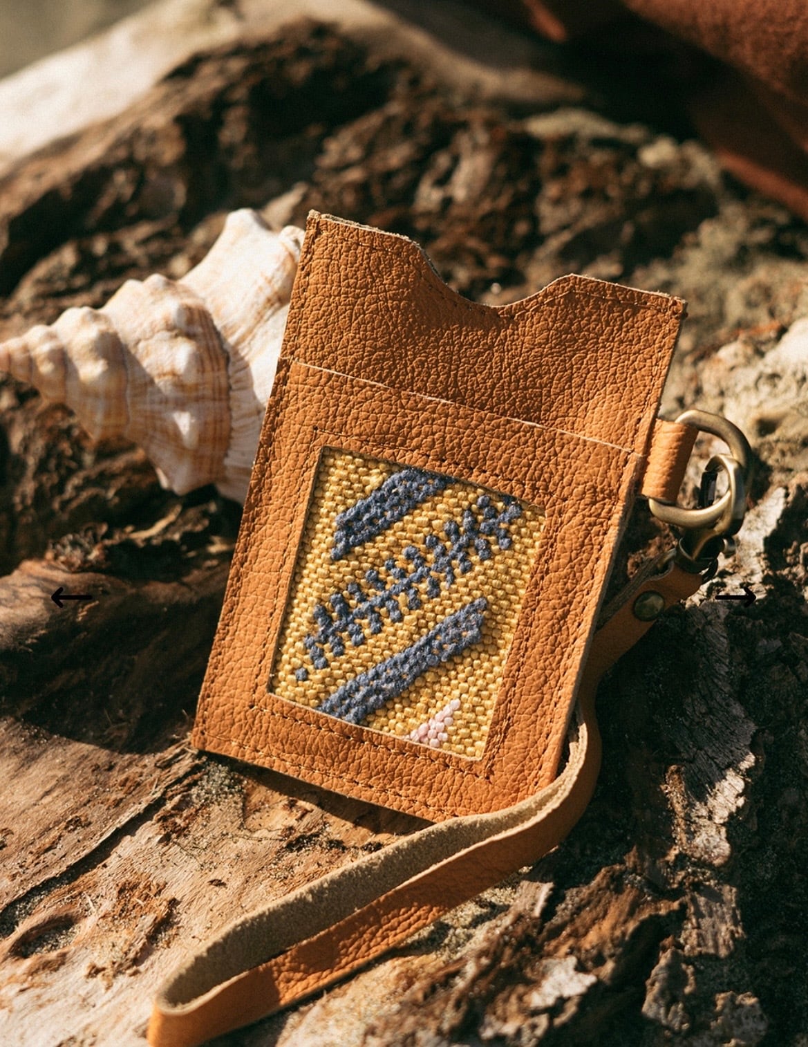 モロッコのビンテージカーペットとレザーを使用したカードホルダー。